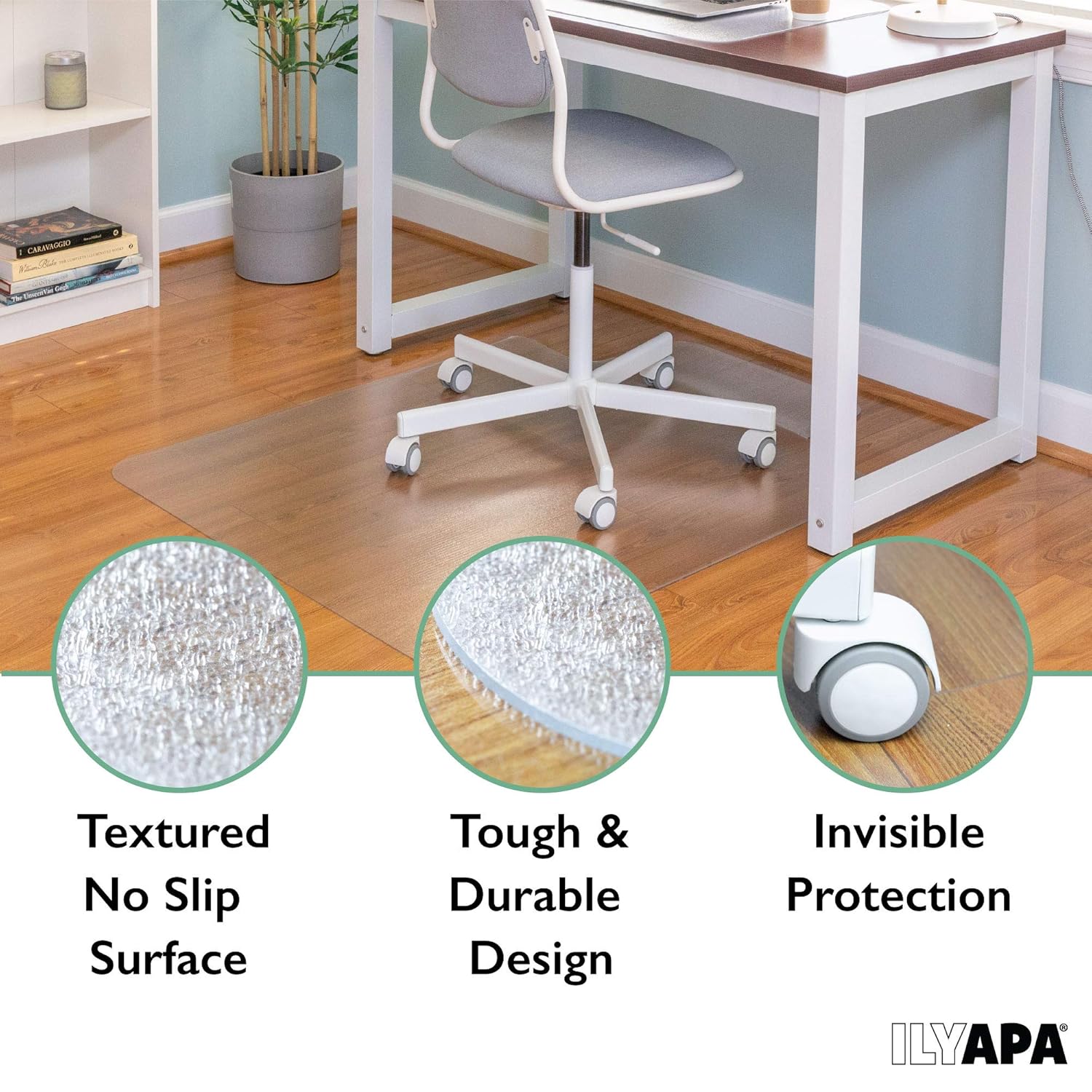 The thickness of chair mats for hardwood floors isn't a critical concern unless the manufacturer ships the product rolled up. It stays out in one place, thanks to the textured surface at. Have a look at our ten best. Gorilla grip premium polycarbonate chair mat for hard floor surfaces, 47x29, heavy duty, easy glide transparent mats for desk chairs, good for desk, office and home, protects floors, with lip, clear. If you are looking for an efficient solution to save your floors from scratches caused by chairs, tables, and armchairs, we recommend purchasing a chair mat for the hardwood floor. These mats make it easy to move choosing the right chair mat is very important for a hardwood floor because most of the mats available are made for carpeted floors and they have. Hardwood floors are made of three layers of solid wood and covered with a protective finish. In this review, you can find the best options available on the market today. Not only does it provide a surface that allows easy rolling of chair wheels but it also does so without moving from its place. While choosing the best chair mat for hardwood floor. Do you want to stop your chair mat from slipping on your hardwood floor?